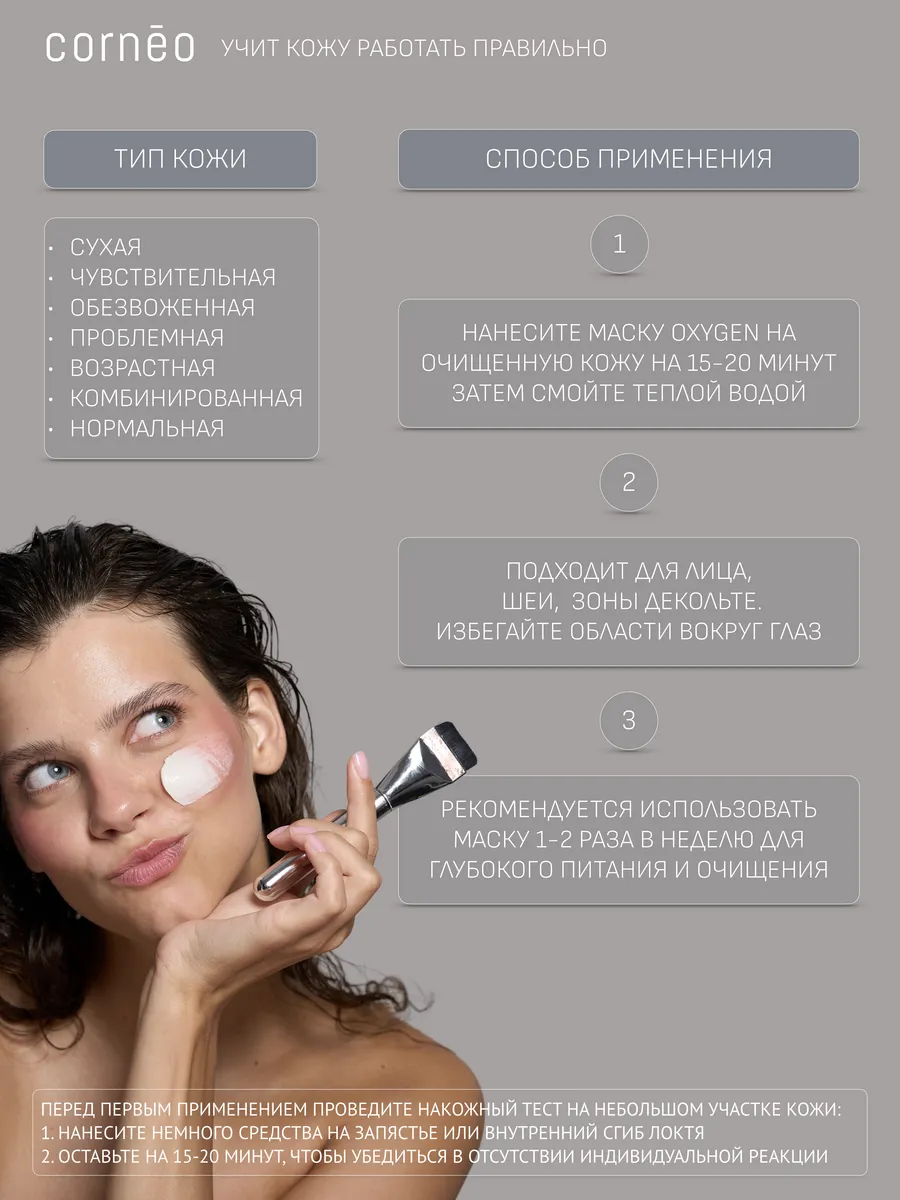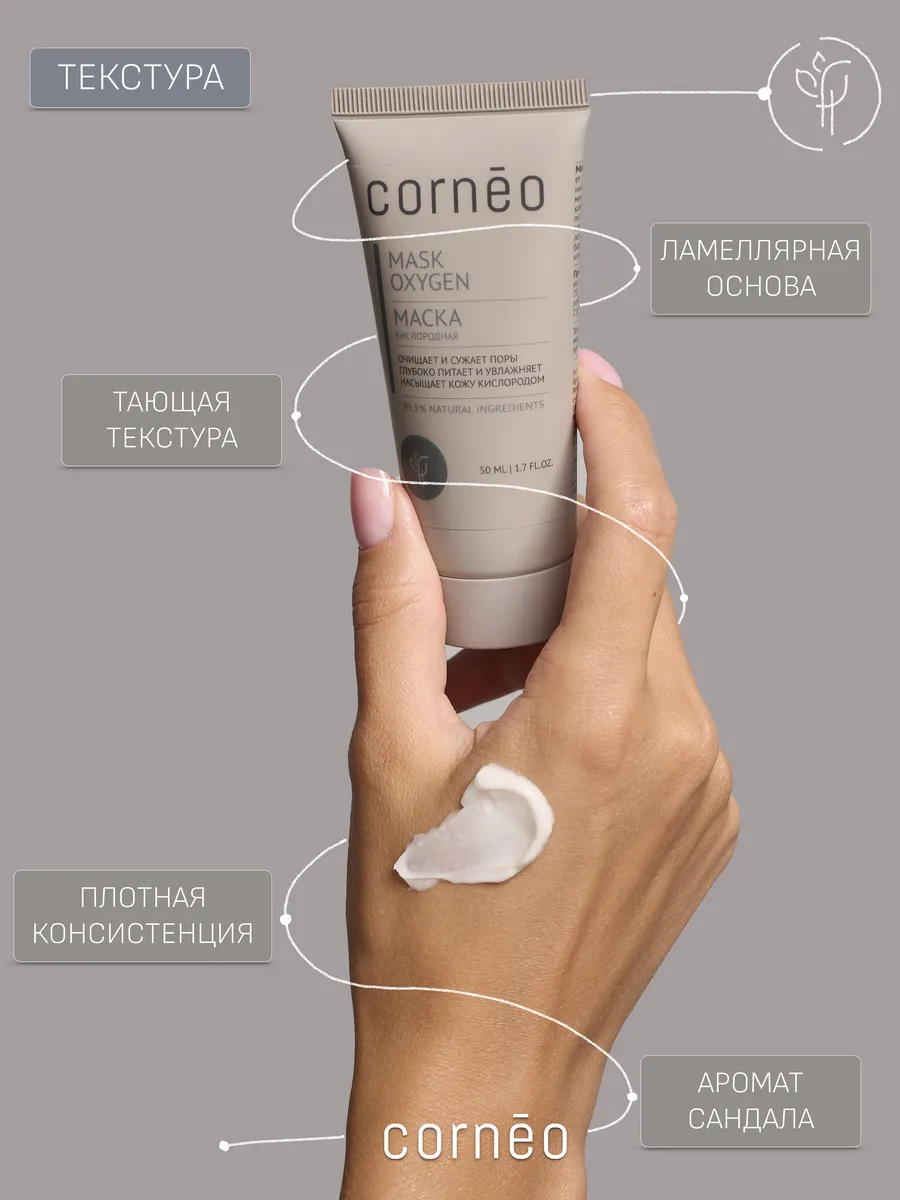 Маска для лица Кислородная питательная для восстановления липидного барьера кожи, очищения и глубокого питания, с натуральным ингредиентами. Корнео