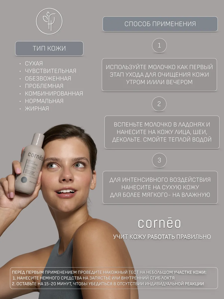 Уходовое пенящееся Молочко Gentle Cleansing от Cornēo для умывания разработано для бережного, но эффективного очищения любого типа кожи без нарушения микробиома и липидного барьера. Очищает и сужает поры. Питает и увлажняет. Уход во время умывания - это реальность. Первый шаг к здоровой, а значит и красивой коже.