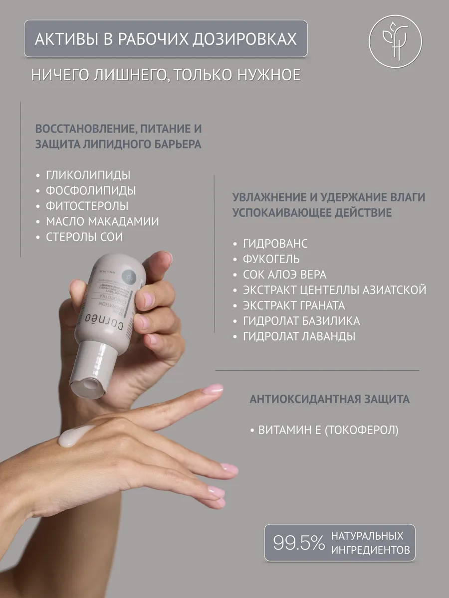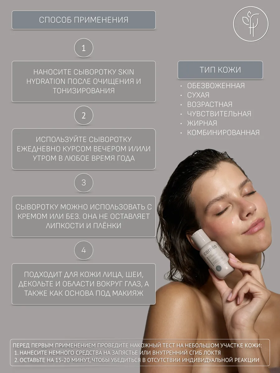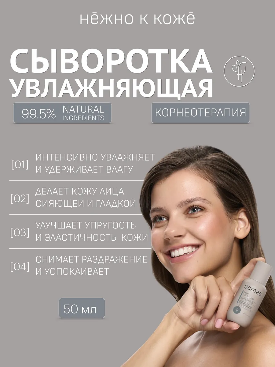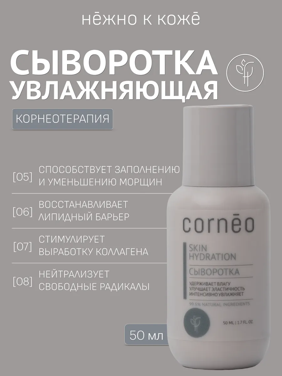 Сыворотка увлажняющая для очень сухой кожи лица от стянутости, сухости, чувствительности, шелушения с натуральным ингредиентами: гидрованс, фукогель, фосфолипиды. Корнео. Корнеотерапия